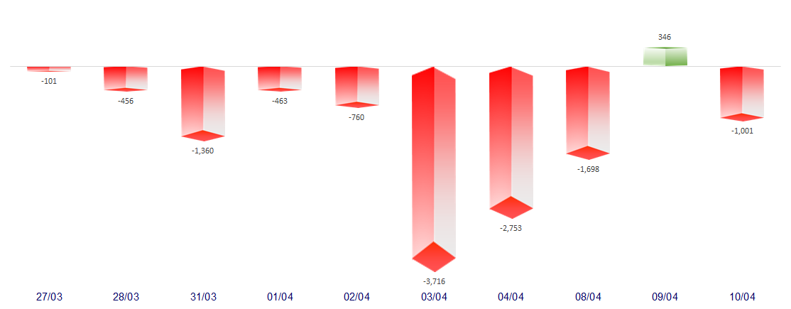 FOREIGN NET FLOW 10 NEAREST SESSIONS (BILLION VND)