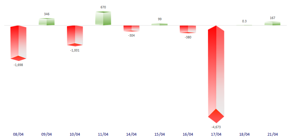 FOREIGN NET FLOW 10 NEAREST SESSIONS (BILLION VND)