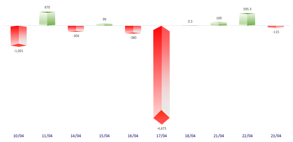 FOREIGN NET FLOW 10 NEAREST SESSIONS (BILLION VND)