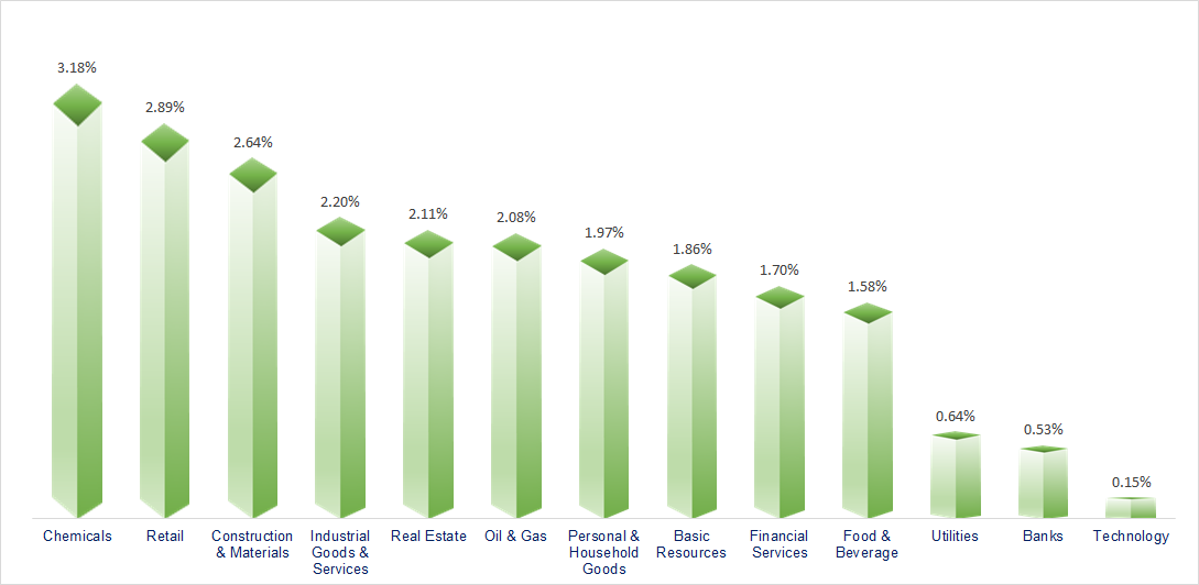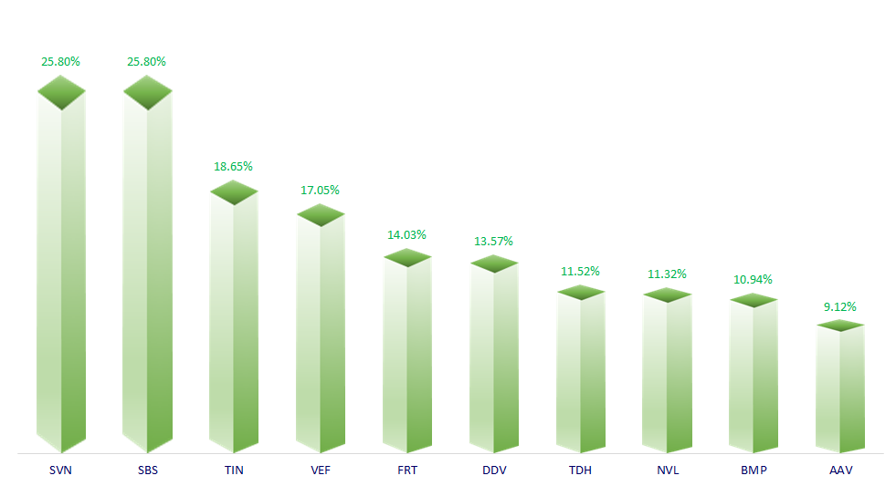 VNINDEX had a bumpy trading session after the market continuously received positive news about the potential easing of the trade war. Nearly all sectors gained points today, with telecommunications, chemicals, and retail being the most positive performers.