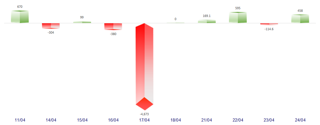 FOREIGN NET FLOW 10 NEAREST SESSIONS (BILLION VND)