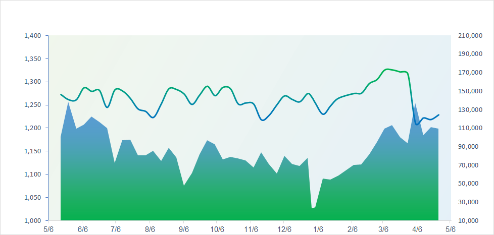 The market experienced an emotional trading session following the release of April 2025 CPI data. Proprietary trading desks at securities firms recorded a net sell of VND324 billion, mainly in HPG (VND33 billion), VRE (VND32 billion), VIC (VND26 billion), among others.