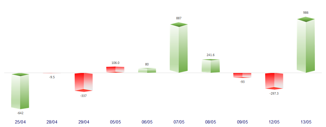 FOREIGN NET FLOW 10 NEAREST SESSIONS (BILLION VND)