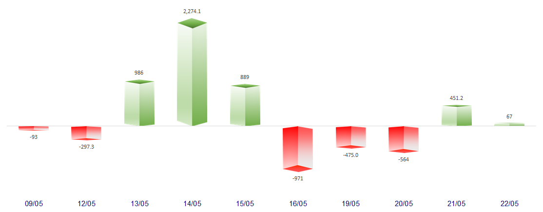 FOREIGN NET FLOW 10 NEAREST SESSIONS (BILLION VND)