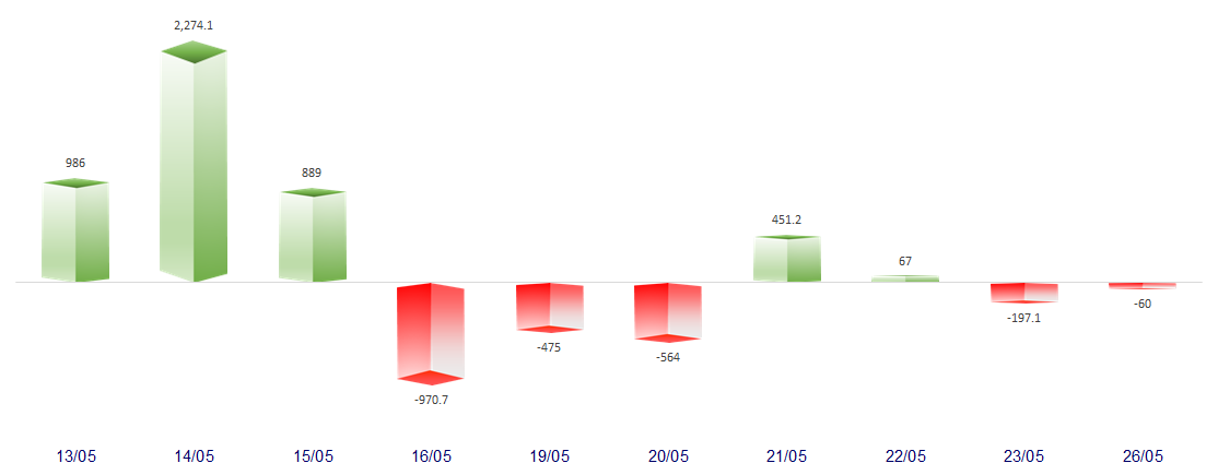 FOREIGN NET FLOW 10 NEAREST SESSIONS (BILLION VND)
