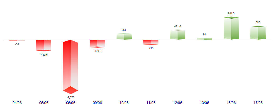 FOREIGN NET FLOW 10 NEAREST SESSIONS (BILLION VND)
