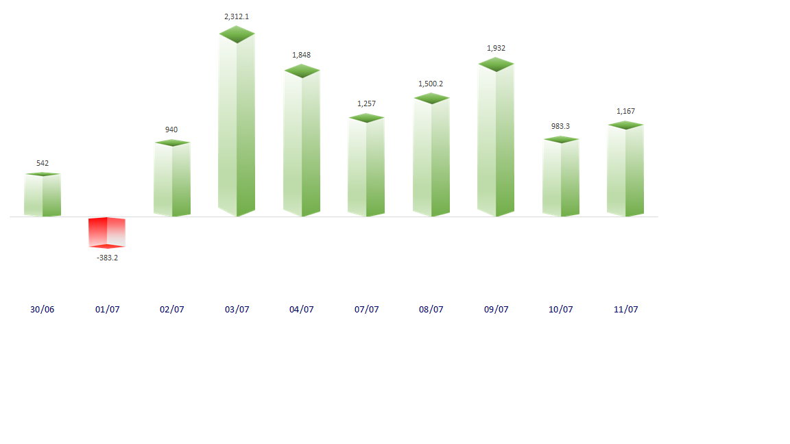 FOREIGN NET FLOW 10 NEAREST SESSIONS (BILLION VND)