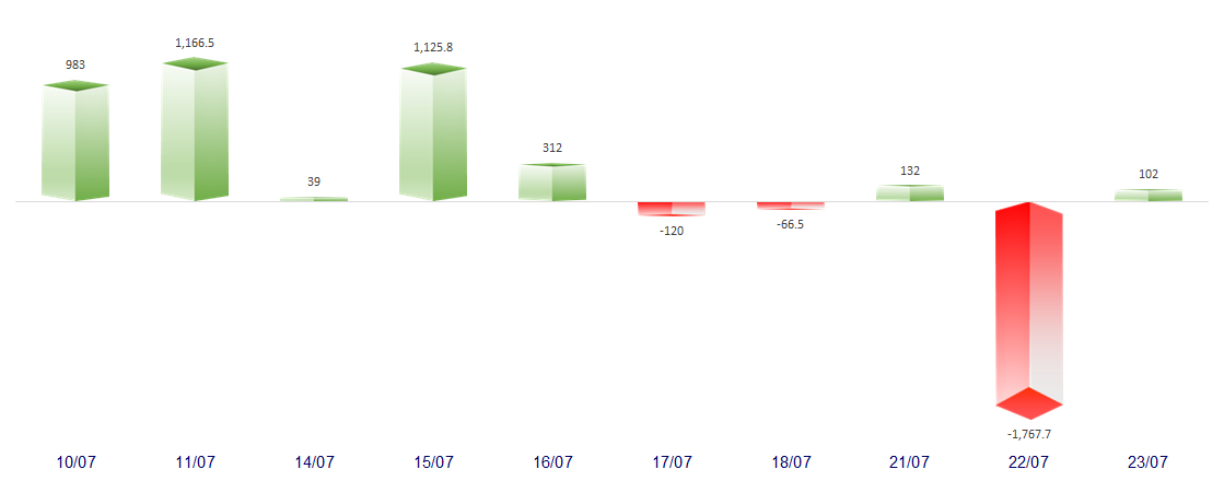 FOREIGN NET FLOW 10 NEAREST SESSIONS (BILLION VND)