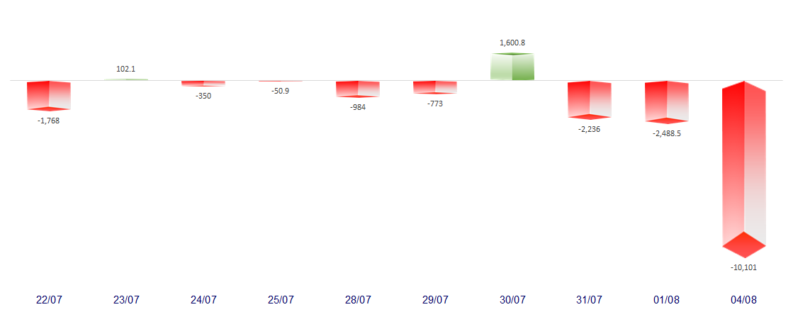 FOREIGN NET FLOW 10 NEAREST SESSIONS (BILLION VND)