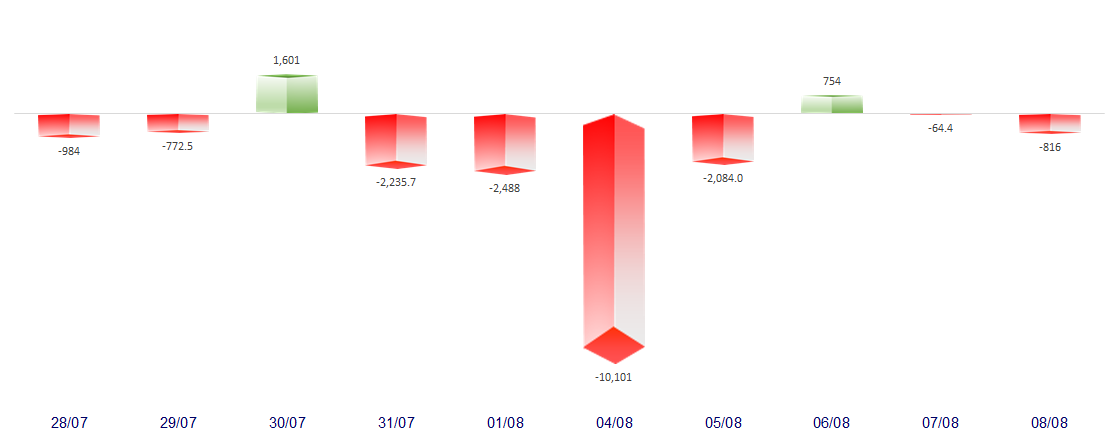 FOREIGN NET FLOW 10 NEAREST SESSIONS (BILLION VND)