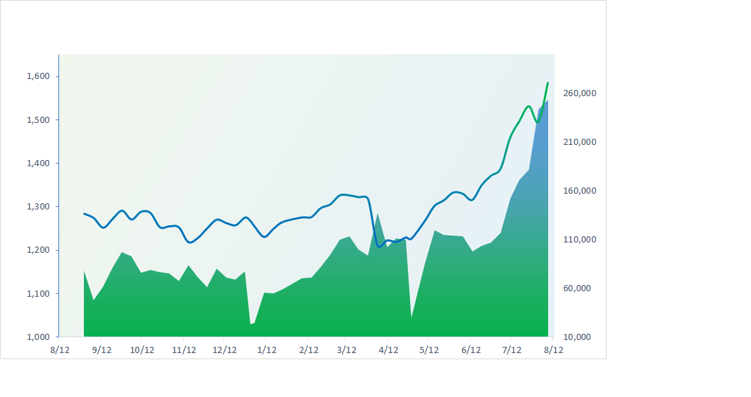 Bước sang phiên chiều, tưởng chừng như lực cung sẽ tiếp tục mạnh mẽ hơn nhờ vào việc hàng T+ về tài khoản nhưng VN-Index đã bứt phá mạnh mẽ khi dòng tiền không cho thấy sự rời bỏ thị trường mà xoay tua sang các cổ phiếu khác.