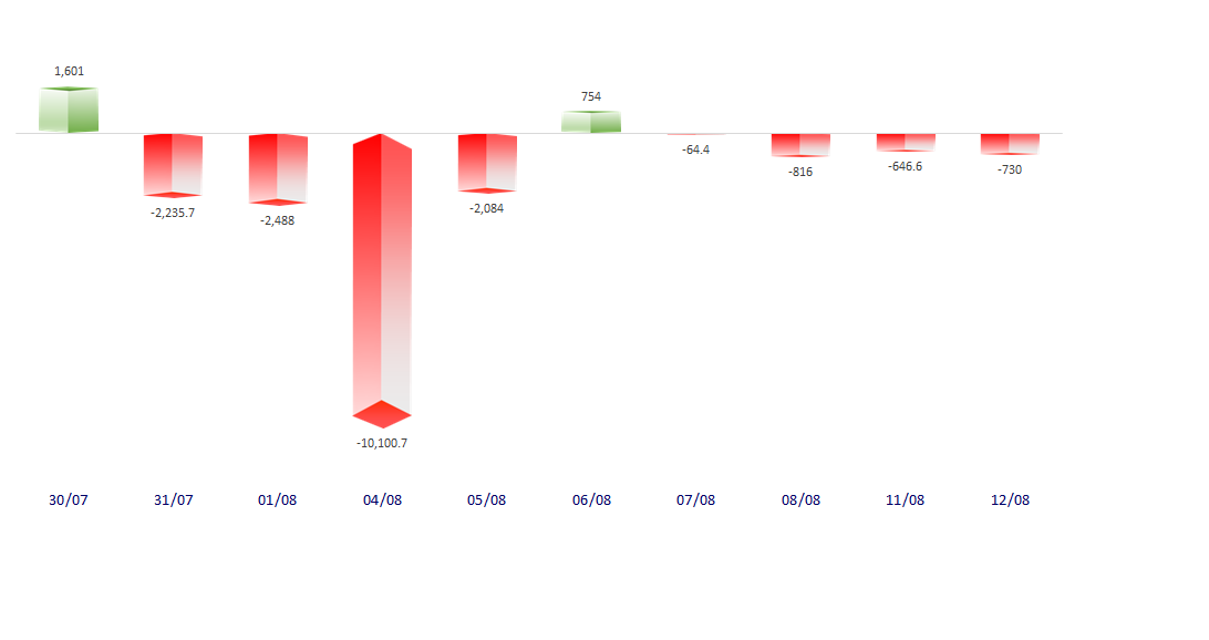 FOREIGN NET FLOW 10 NEAREST SESSIONS (BILLION VND)