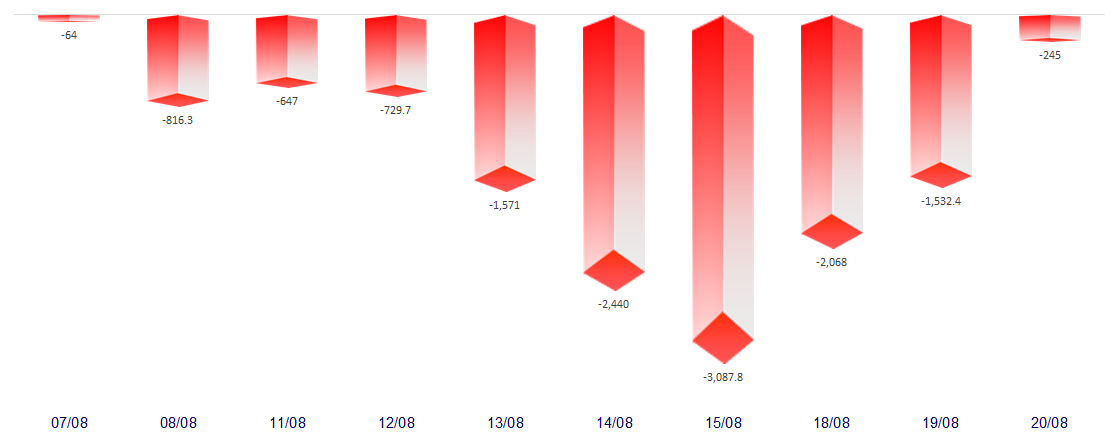 FOREIGN NET FLOW 10 NEAREST SESSIONS (BILLION VND)