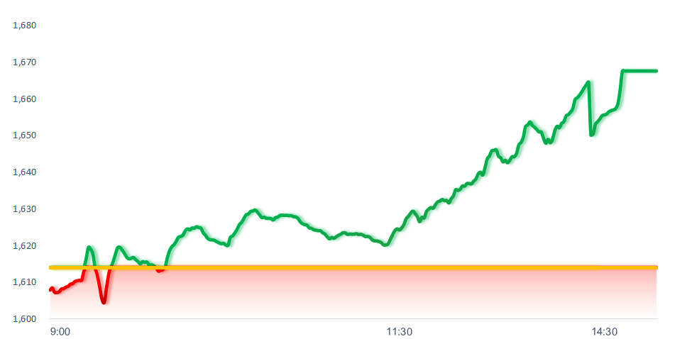 VN-Index rebounded strongly, gaining more than 50 points as foreign investors returned with net purchases of nearly VND700 billion. Almost all sectors advanced today, with Securities, Retail, and Real Estate leading the gains.