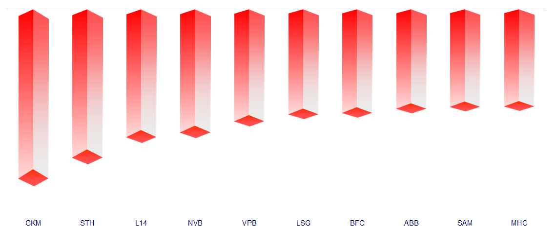 HPG: Despite a strong rebound of 4.8% today, HPG remained under heavy selling pressure from foreign investors, with net outflows reaching VND114 billion. This marked the sixth straight session of foreign net selling in HPG, with a cumulative value of over VND2,350 billion.