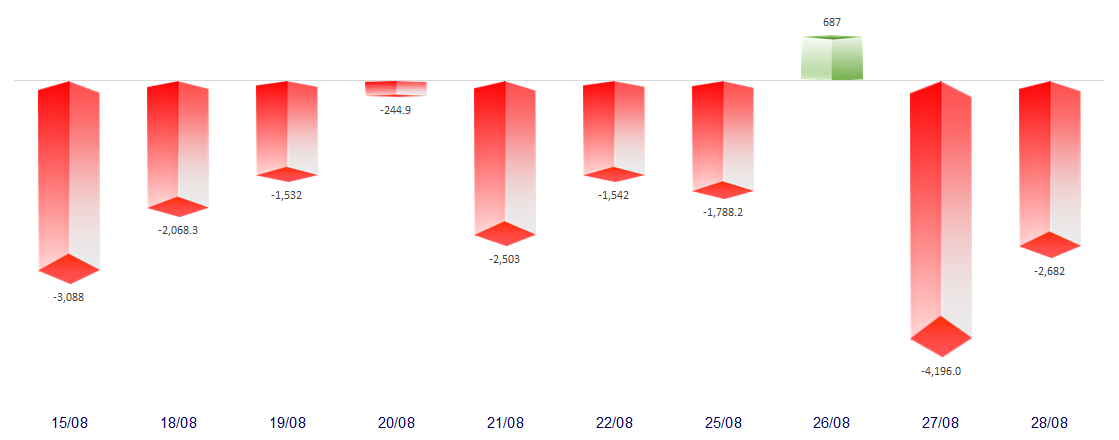 FOREIGN NET FLOW 10 NEAREST SESSIONS (BILLION VND)