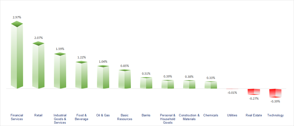 VN-Index recovered, closing up more than 8 points despite heavy net selling pressure from foreign investors for the second straight session. Securities and Retail stocks were the most positive performers, while Technology and Real Estate sectors had a lackluster trading day.