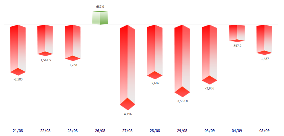 FOREIGN NET FLOW 10 NEAREST SESSIONS (BILLION VND)