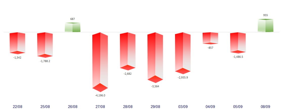 FOREIGN NET FLOW 10 NEAREST SESSIONS (BILLION VND)