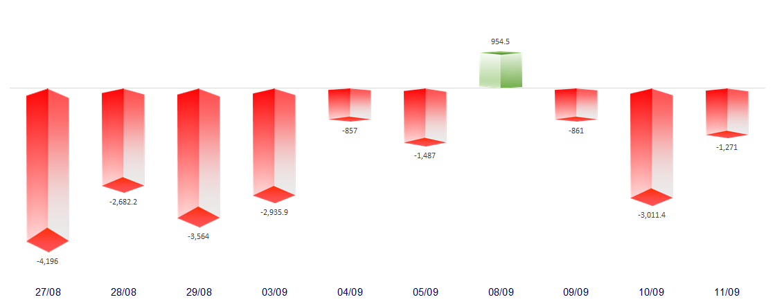 FOREIGN NET FLOW 10 NEAREST SESSIONS (BILLION VND)