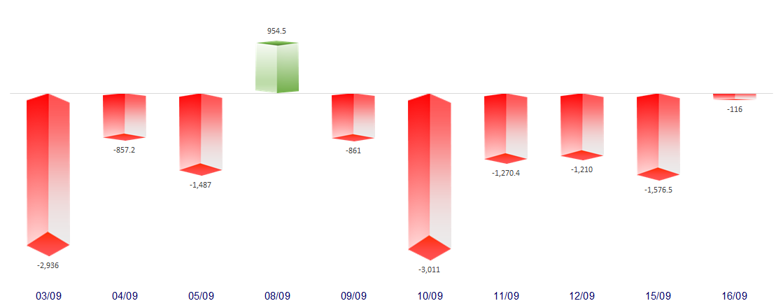 FOREIGN NET FLOW 10 NEAREST SESSIONS (BILLION VND)