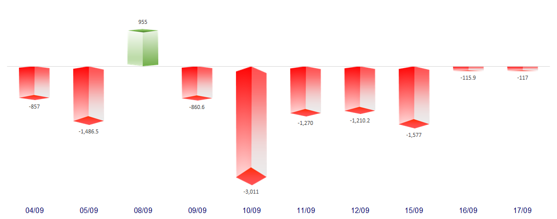 FOREIGN NET FLOW 10 NEAREST SESSIONS (BILLION VND)