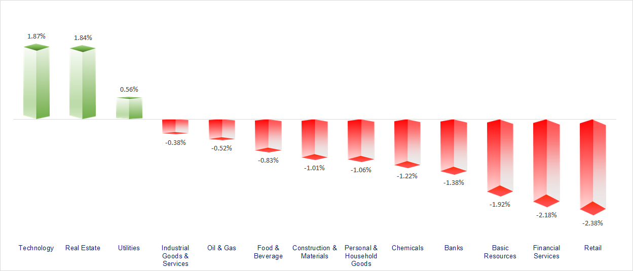 VNIndex unexpectedly plunged at the end of the session before the Fed meeting taking place tonight as well as the derivatives expiration taking place tomorrow. Vingroup, technology and telecommunications stocks had quite positive developments. On the contrary, almost all industry groups were submerged in red.