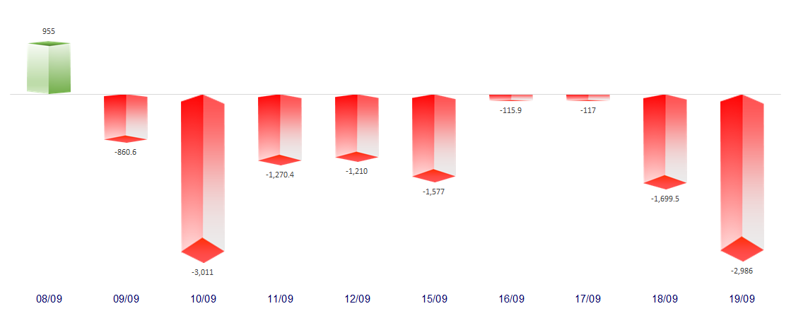FOREIGN NET FLOW 10 NEAREST SESSIONS (BILLION VND)