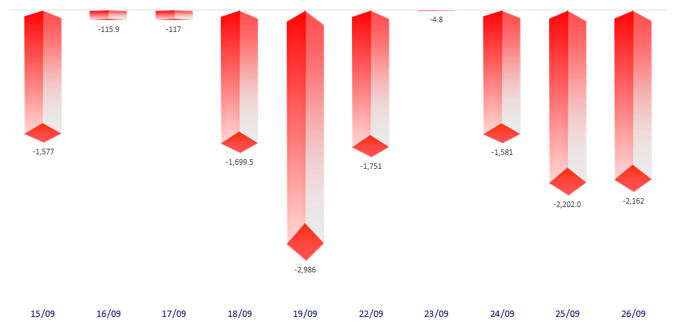 FOREIGN NET FLOW 10 NEAREST SESSIONS (BILLION VND)