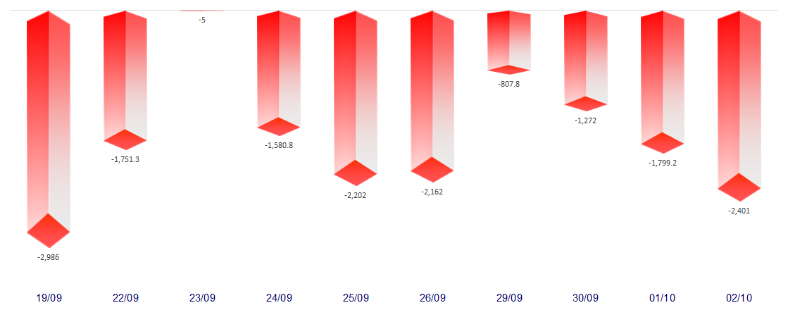 FOREIGN NET FLOW 10 NEAREST SESSIONS (BILLION VND)