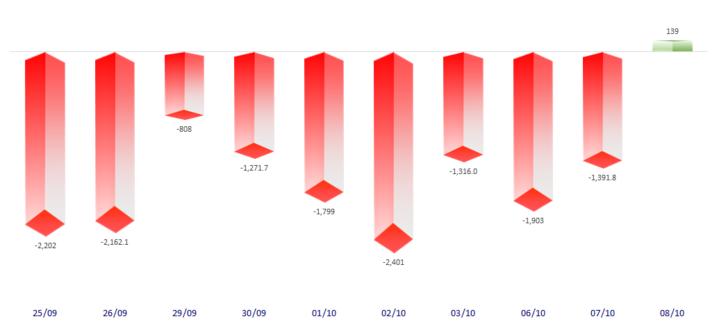 FOREIGN NET FLOW 10 NEAREST SESSIONS (BILLION VND)