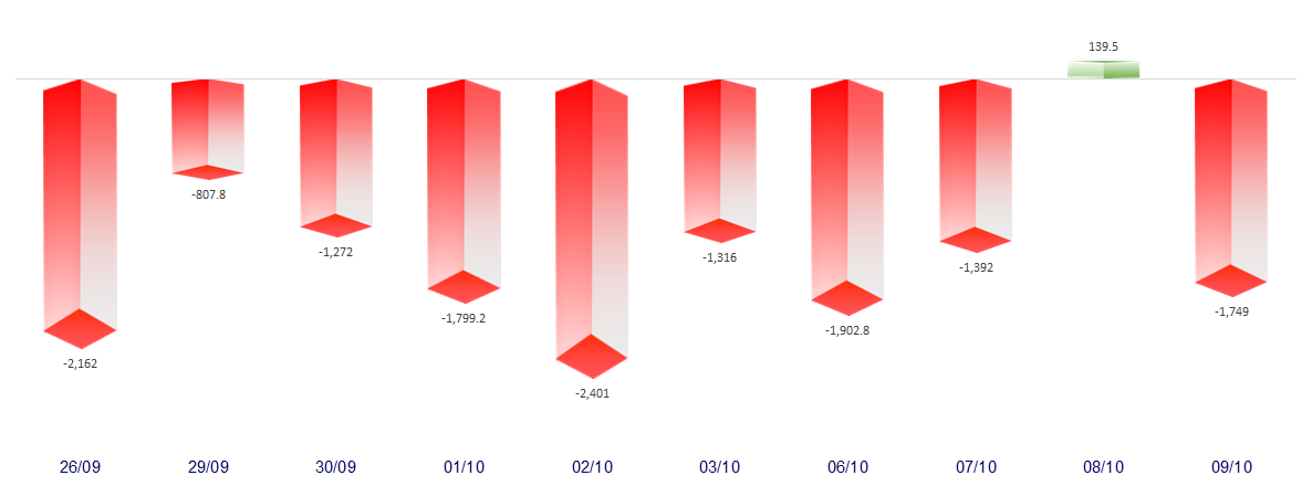 FOREIGN NET FLOW 10 NEAREST SESSIONS (BILLION VND)