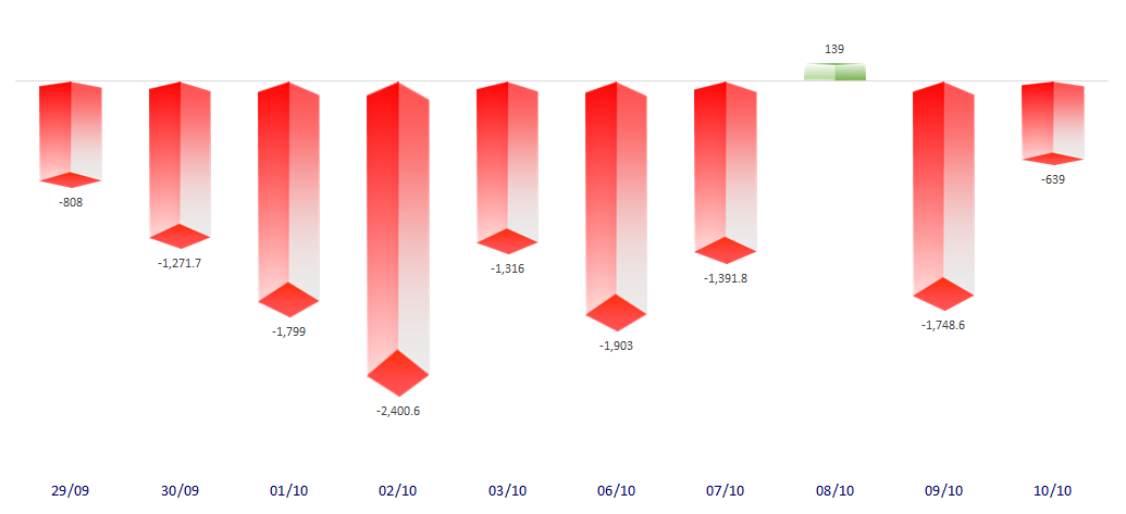 FOREIGN NET FLOW 10 NEAREST SESSIONS (BILLION VND)