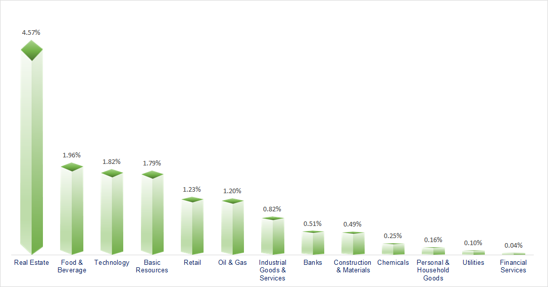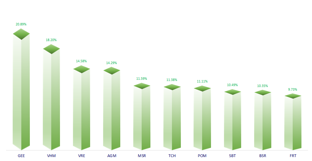 VN-Index ended the trading week with a gain of over 100 points, driven by the Vingroup and Banking stock groups. The Vingroup family, Real Estate, and Resources were the top three performing sectors in today’s session. In contrast, Technology, Commodities, and Industrial Services sectors showed rather subdued performance.