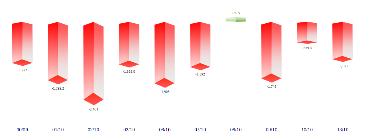 FOREIGN NET FLOW 10 NEAREST SESSIONS (BILLION VND)