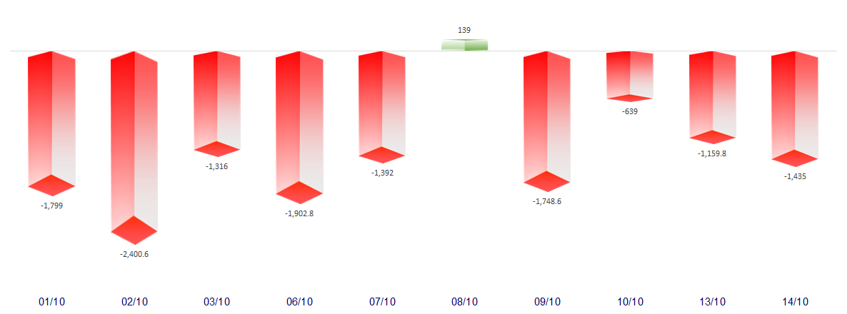 FOREIGN NET FLOW 10 NEAREST SESSIONS (BILLION VND)