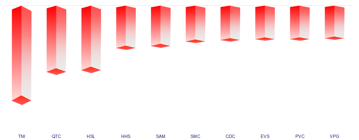 All three Vingroup stocks reversed more than 3% from their session highs, accompanied by higher trading volume than the previous session, indicating a likely distribution session for this trio.