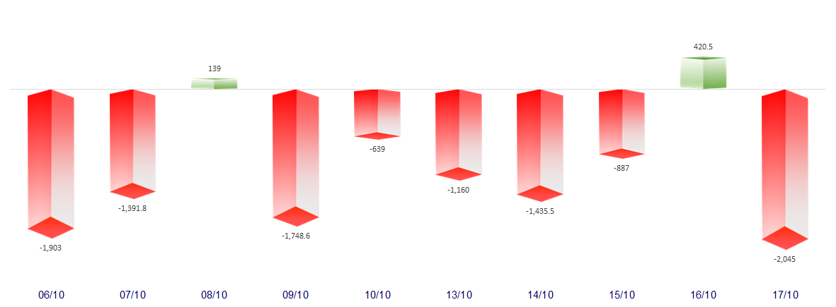 FOREIGN NET FLOW 10 NEAREST SESSIONS (BILLION VND)