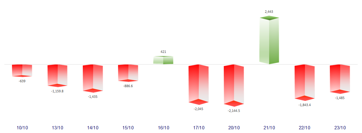 FOREIGN NET FLOW 10 NEAREST SESSIONS (BILLION VND)