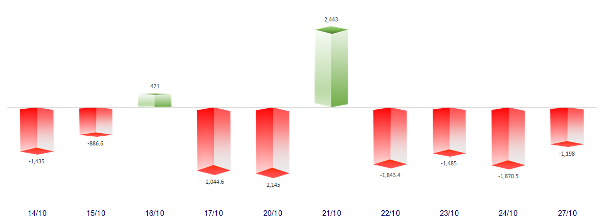 FOREIGN NET FLOW 10 NEAREST SESSIONS (BILLION VND)