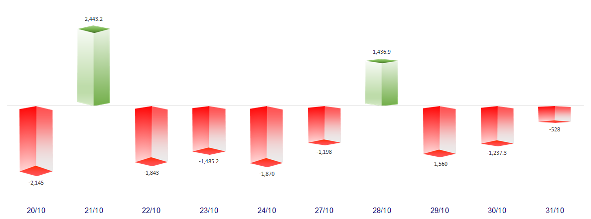 FOREIGN NET FLOW 10 NEAREST SESSIONS (BILLION VND)