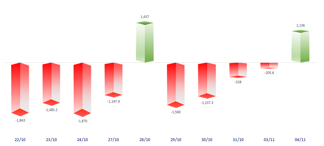 FOREIGN NET FLOW 10 NEAREST SESSIONS (BILLION VND)