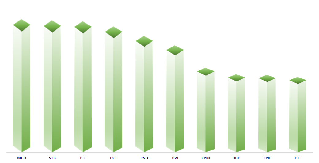 Nhiều cổ phiếu tiêu dùng đảo chiều tăng điểm trong phiên chiều để kết thúc phiên trong sắc xanh có MCH+6.5%, MSN+3.9%, DGW+1.1% và MWG+1%. Trong đó, MCH là cổ phiếu đáng chú ý nhất khi tăng vượt đỉnh thời đại kèm thanh khoản cao nhất lịch sử trong phiên hôm nay. Khối lượng giao dịch của cổ phiếu này lên tới 1.8 triệu cổ phiếu – cao đột biến so với mức khối lượng trung bình là 400 nghìn cổ phiếu trong hơn 2 tháng trở lại đây.