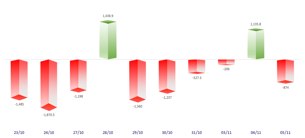 FOREIGN NET FLOW 10 NEAREST SESSIONS (BILLION VND)