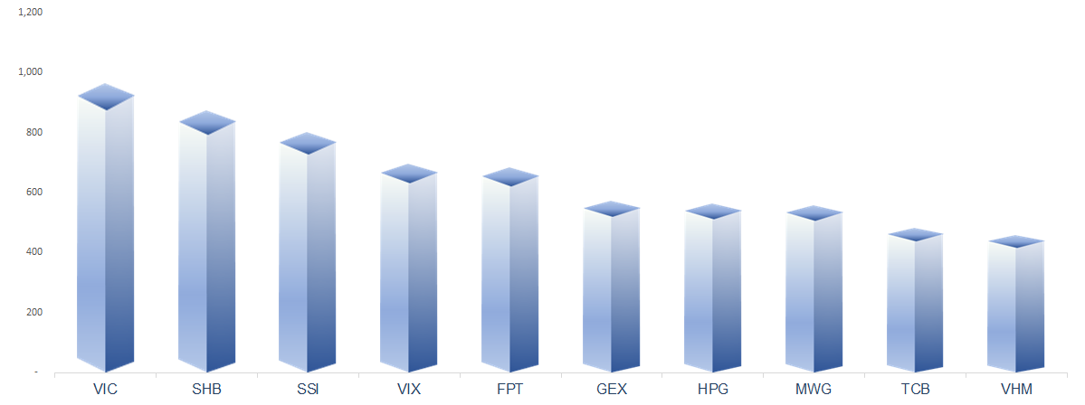 MWG: Despite foreign investors net selling over VND 1,000 billion in today’s session, MWG was unexpectedly the most net-bought stock, with a value of over VND 177 billion.