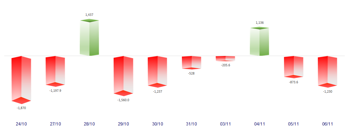 FOREIGN NET FLOW 10 NEAREST SESSIONS (BILLION VND)