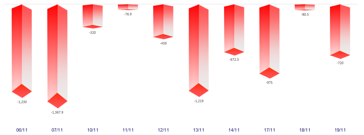 FOREIGN NET FLOW 10 NEAREST SESSIONS (BILLION VND)