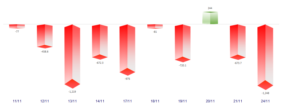 FOREIGN NET FLOW 10 NEAREST SESSIONS (BILLION VND)