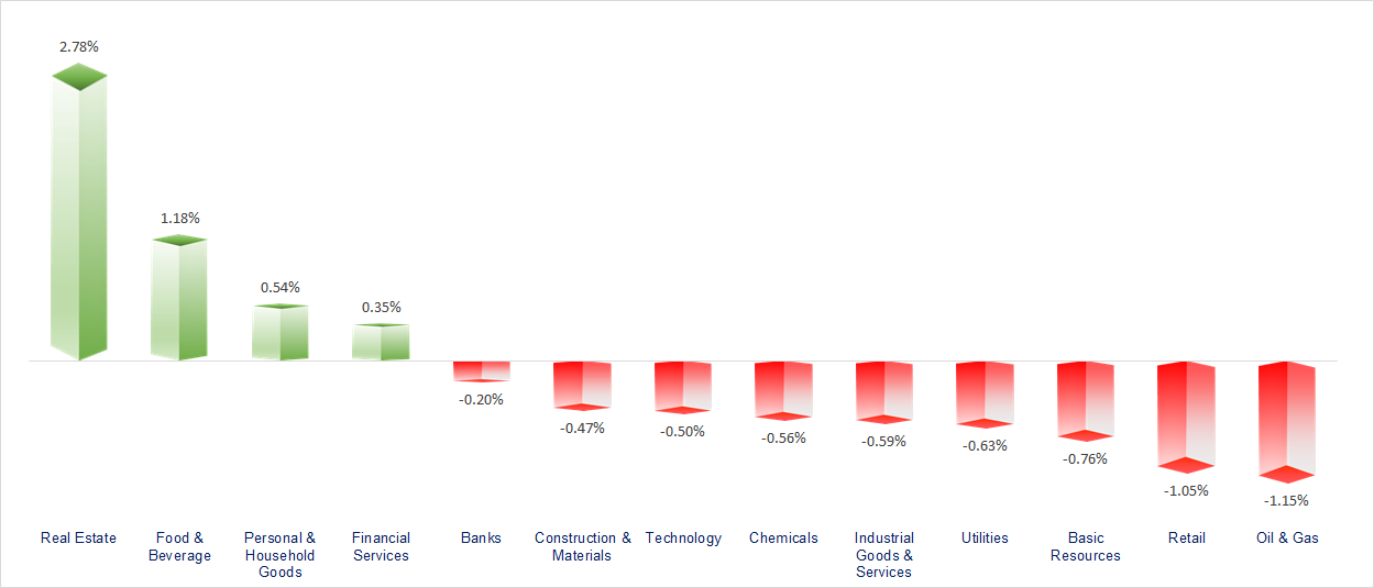 VN-Index surged more than 13 points, mainly driven by capital inflows into the Vin group and several large-cap stocks in the VN30 basket such as VJC and VNM. The Vin group and F&B sectors were the two most positive performers of the session. In contrast, the Oil & Gas, Retail, and Chemicals sectors showed rather lackluster movements.