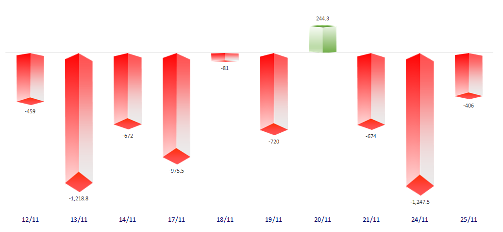 FOREIGN NET FLOW 10 NEAREST SESSIONS (BILLION VND)